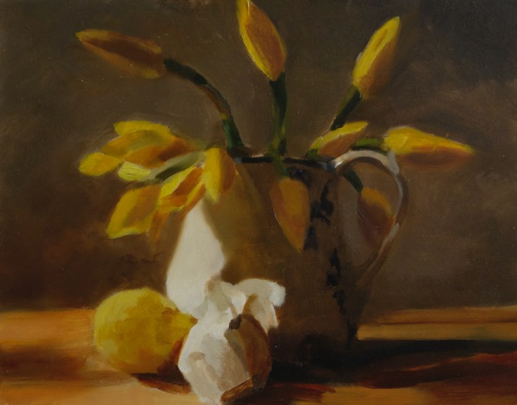 Sometimes spending hours on a painting can create an overworked and sterile image. As I say to my students, “adding detail will not make your painting better or more convincing.” The most important things to achieve are to create accurate values. It’s also crucial to focus on colour and edge handling. For me this was a good example of knowing when to stop a painting. The painting was finished in one sitting and as a result has character and life. The paint is applied thickly and confidently. There is texture and immediacy to it. Does it need any more detail? For me, it has told its story. The lack of detail is evident in this painting, yet it still conveys atmosphere and character.