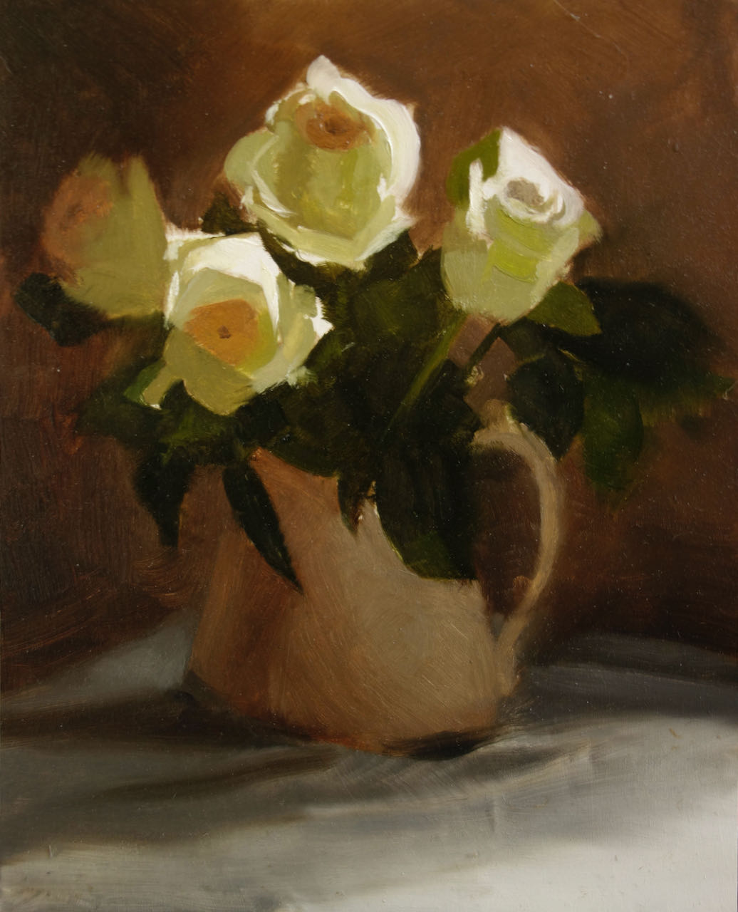 Sometimes spending hours on a painting can create an overworked and sterile image. As I say to my students, “adding detail will not make your painting better or more convincing.” The most important things to achieve are to create accurate values. It’s also crucial to focus on colour and edge handling. For me this was a good example of knowing when to stop a painting. The painting was finished in one sitting and as a result has character and life. The paint is applied thickly and confidently. There is texture and immediacy to it. Does it need any more detail? For me, it has told its story. The lack of detail is evident in this painting, yet it still conveys atmosphere and character.